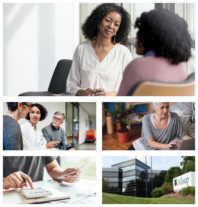 Allsup’s imagery is primarily focused on creating a human connection with our audience. Many of our existing and future customers are going through tough times, so we prefer to use imagery that is comforting, lighthearted, and reassuring.